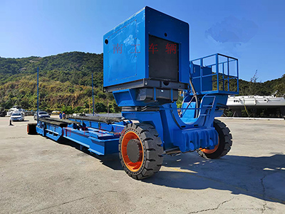 3、拖船支撑装置设计宽度可调用于支撑运输不同规格的船艇。支撑架上面铺300mm橡胶管,防止碰花船底,具有较好的防护性。拖船高度可调,升降行程1-3米,前部均设计平衡调节机构。确保在不同坡度行走时船艇均保持水平状态大大提高行驶安全。